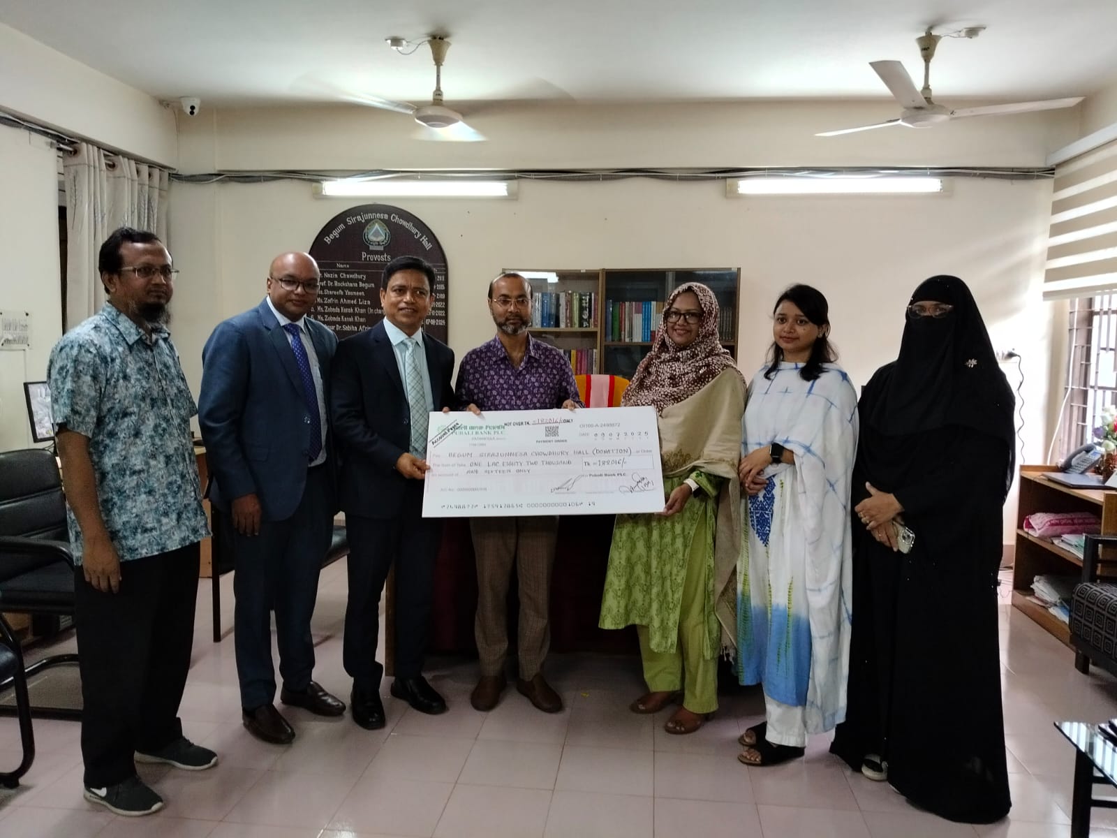 শাবিপ্রবির আবাসিক হলে পূবালী ব্যাংকের সিএসআর কার্যক্রমের চেক হস্তান্তর
