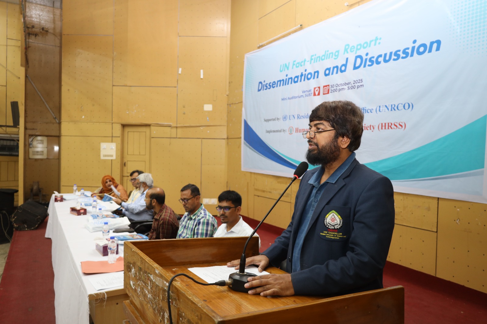 আজ ৩০ অক্টোবর, ২০২৫ তারিখ, বৃহস্পতিবার বিকেল ৩টায় শাহজালাল বিজ্ঞান ও প্রযুক্তি বিশ্ববিদ্যালয়, সিলেট-এর মিনি অডিটোরিয়ামে হিউম্যান রাইটস সাপোর্ট সোসাইটি এর উদ্যোগে ‘জাতিসংঘের তথ্য-অনুসন্ধান প্রতিবেদন: প্রচার এবং আলোচনা’ শীর্ষক সেমিনার অনুষ্ঠিত হয়।