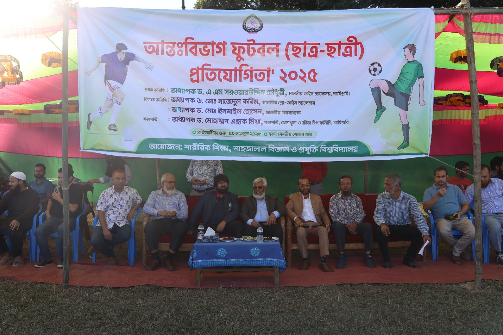 আজ বুধবার ১৯ নভেম্বর, ২০২৫ বিকাল সাড়ে ৩টায় শাহজালাল বিজ্ঞান ও প্রযুক্তি বিশ্ববিদ্যালয়ে আন্তঃবিভাগ ফুটবল প্রতিযোগিতা শুরু হয়। বিশ্ববিদ্যালয়ের খেলার মাঠে এর উদ্বোধন করেন ভাইস চ্যান্সেলর অধ্যাপক ড. এ. এম. সরওয়ারউদ্দিন চৌধুরী।
