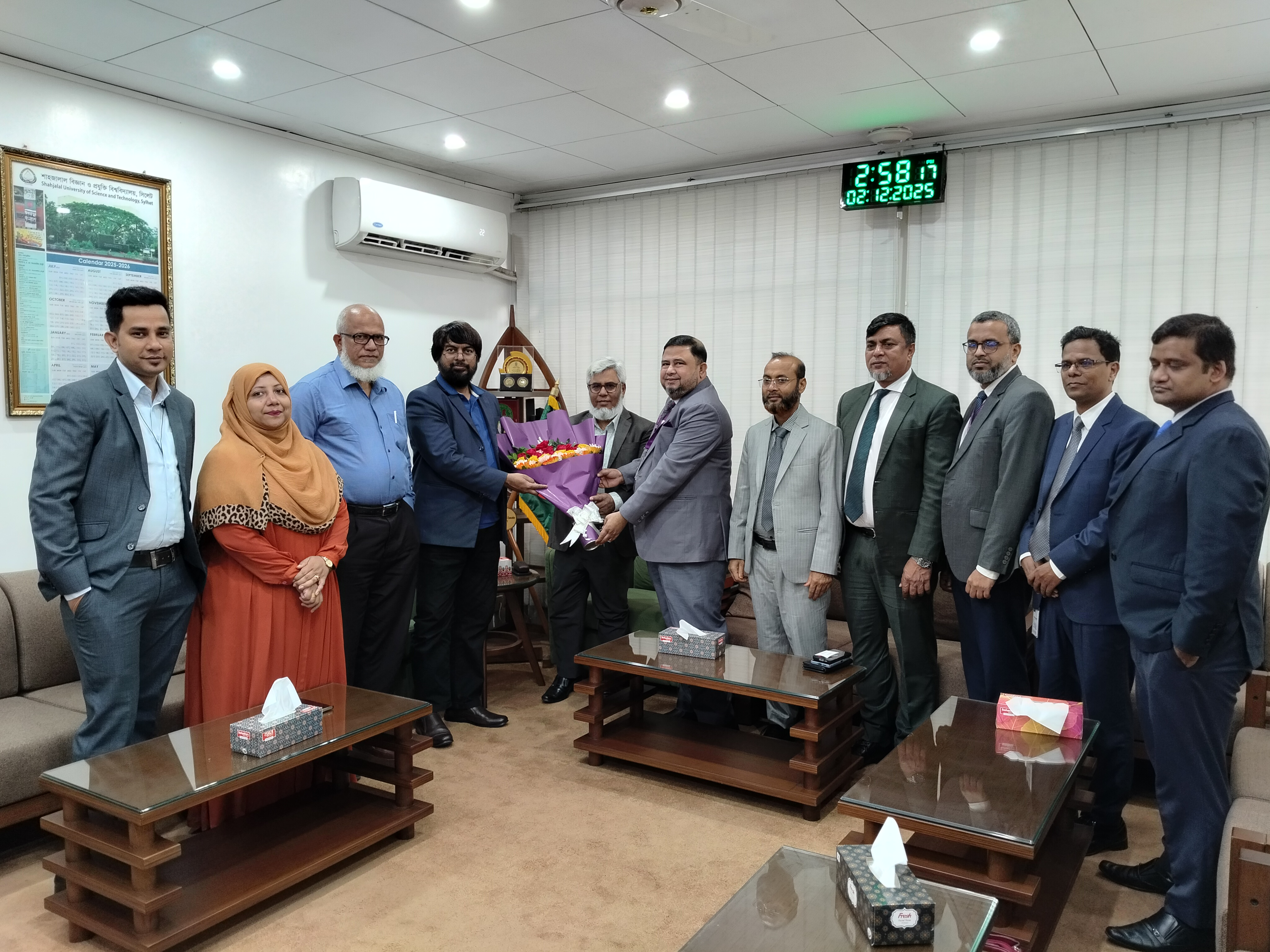আজ ২ ডিসেম্বর, ২০২৫ তারিখ, মঙ্গলবার বিকেল ৩টায় শাহজালাল বিজ্ঞান ও প্রযুক্তি বিশ্ববিদ্যালয়, সিলেট-এর মাননীয় ভাইস চ্যান্সেলর অধ্যাপক ড. এ. এম. সরওয়ারউদ্দিন চৌধুরীর সাথে তাঁর কার্যালয়ে সৌজন্য সাক্ষাৎ করে মেঘনা ব্যাংক পিএলসির একটি প্রতিনিধিদল।