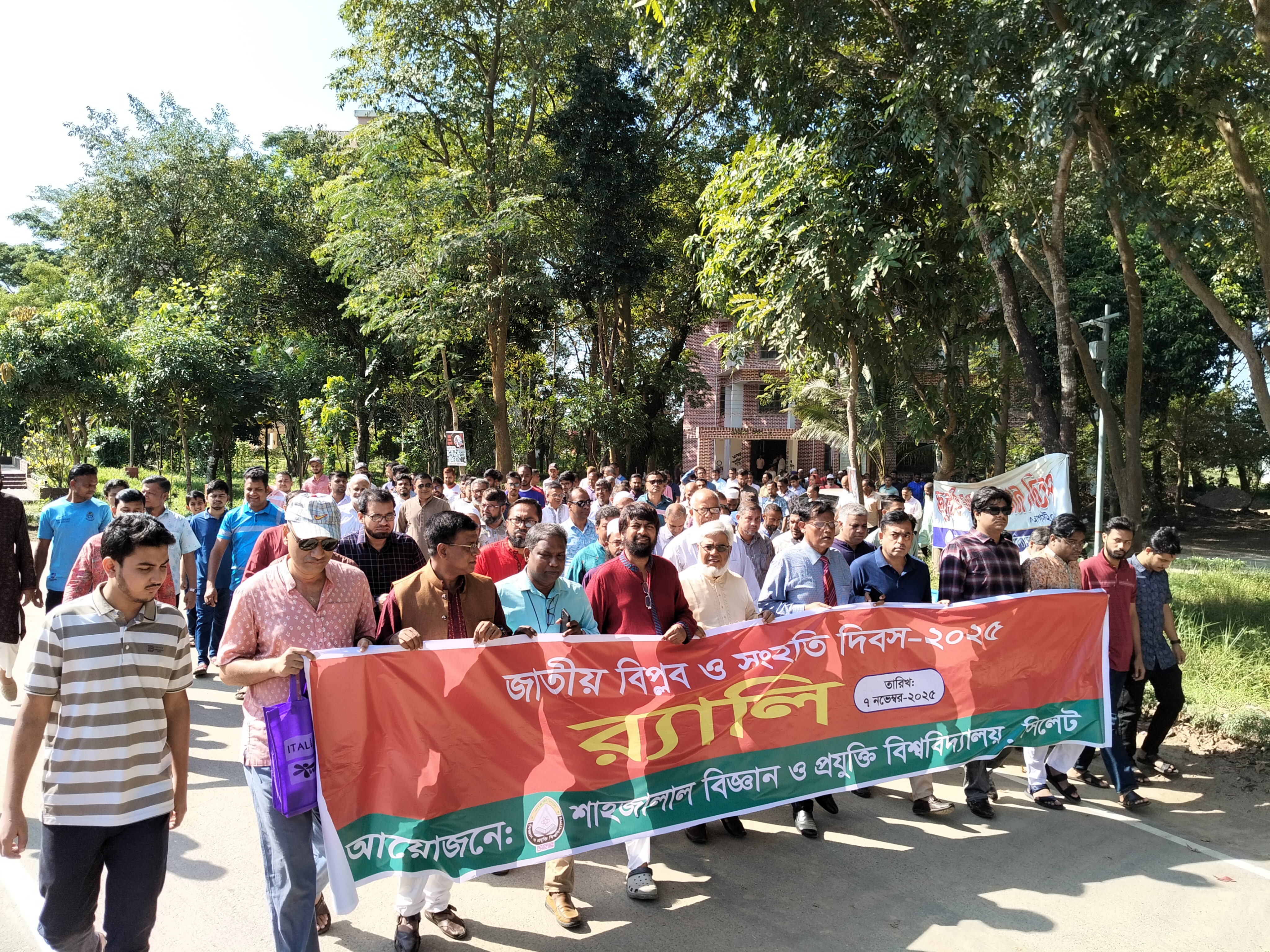 আজ ৭ নভেম্বর, ২০২৫ তারিখ, শুক্রবার যথাযোগ্য মর্যাদায় শাহজালাল বিজ্ঞান ও প্রযুক্তি বিশ্ববিদ্যালয়, সিলেট-এ নানা আয়োজনে জাতীয় বিপ্লব ও সংহতি দিবস-২০২৫ পালন করা হয়।