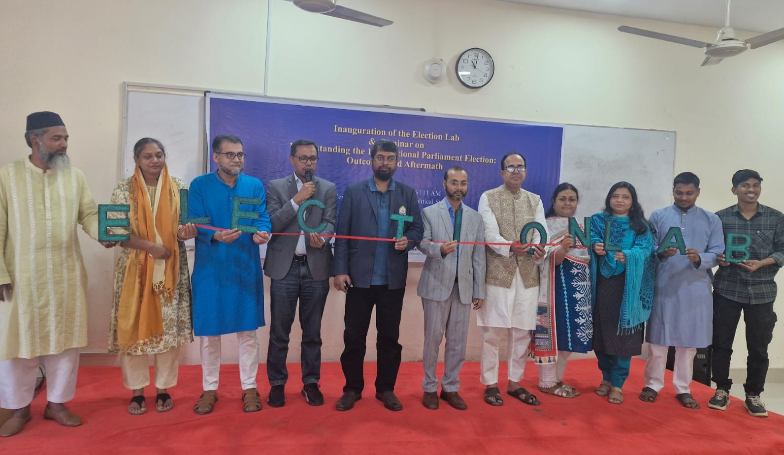 আজ ১৯ ফেব্রুয়ারি, ২০২৬ তারিখ, বৃহস্পতিবার সকাল ১১টায় শাহজালাল বিজ্ঞান ও প্রযুক্তি বিশ্ববিদ্যালয়, সিলেট-এ পলিটিক্যাল স্টাডিজ বিভাগের উদ্যোগে ‘ইলেকশন ল্যাব’র উদ্বোধন করা হয়।