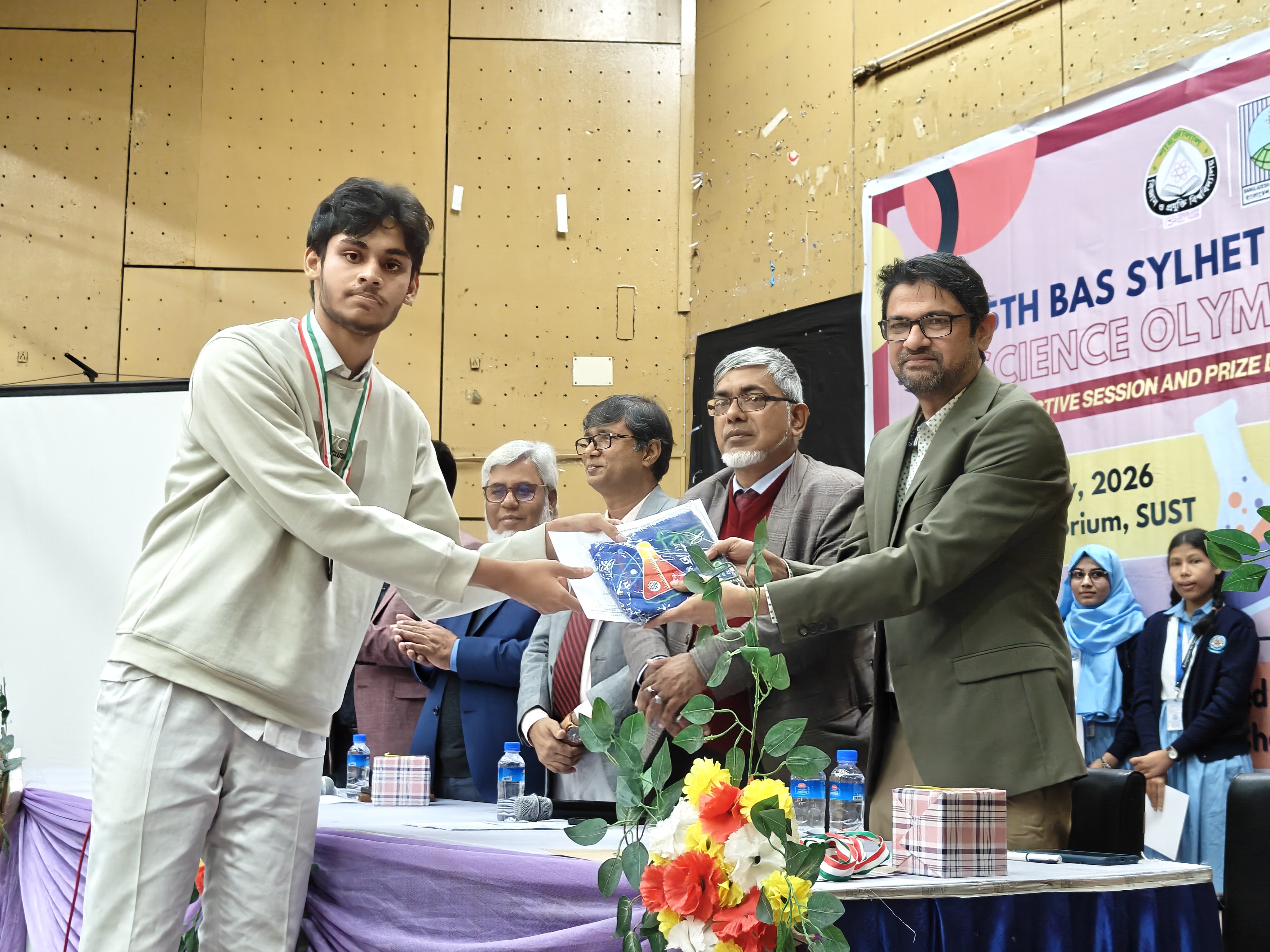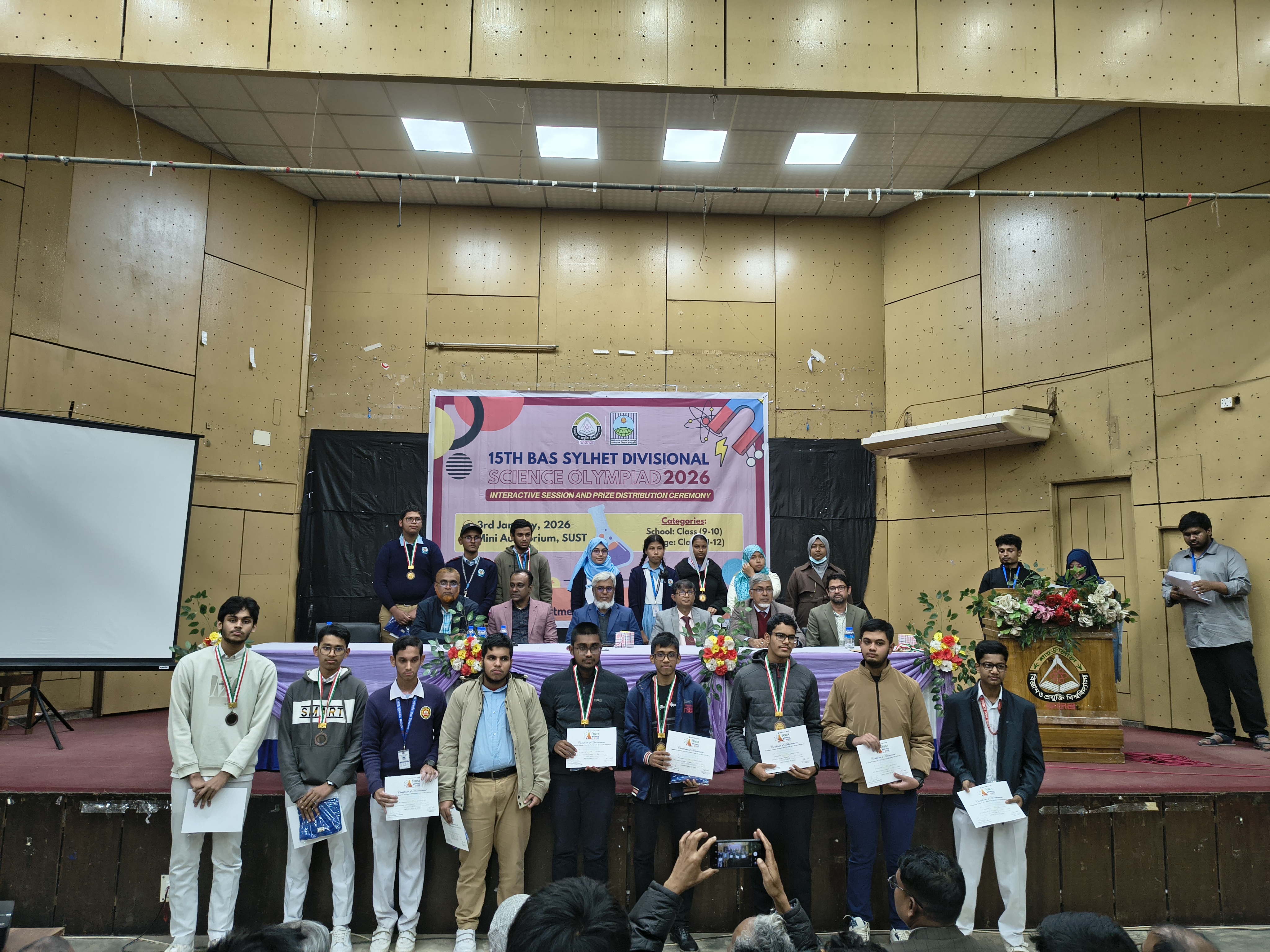 During the concluding prize-giving ceremony, Aninda Modak of Sylhet Government College and Tasheen Ruhul of Habiganj Government High School were crowned champions in the College and School groups, respectively. A total of 20 outstanding students were selected to represent the division at the upcoming National Science Olympiad at the University of Dhaka on January 17. The ceremony was graced by high-profile academics, including SUST VC-in-charge Professor Dr. Sajedul Karim, as well as the Vice-Chancellors of Sylhet International University and North East University Bangladesh, who all emphasized the importance of nurturing young innovators for the nation's future.